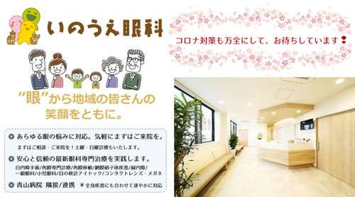 青山病院との縁があり青山病院の隣に「いのうえ眼科」を開業。地域に密着したアットホームな眼科として期待されている眼科です。